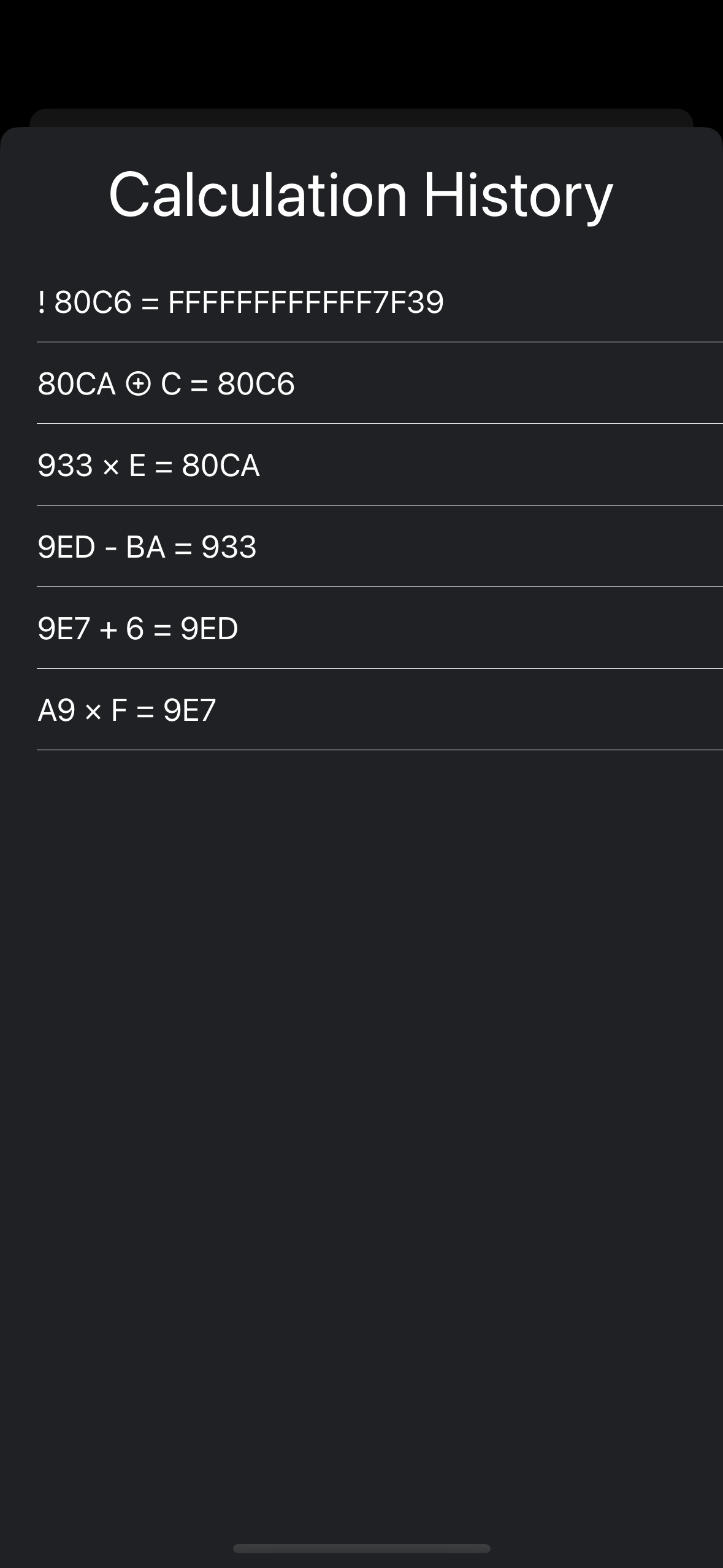 Device Screenshots for Hexacdecimal Calculator