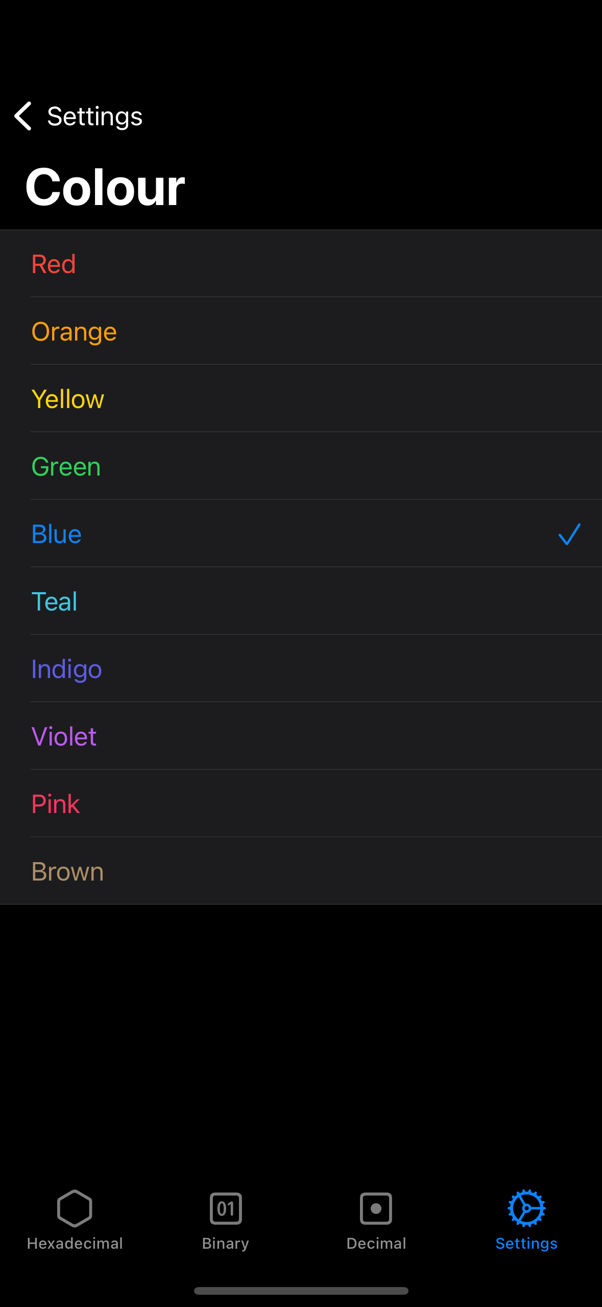 • 10 different system colours which change the colour of buttons and the app icon