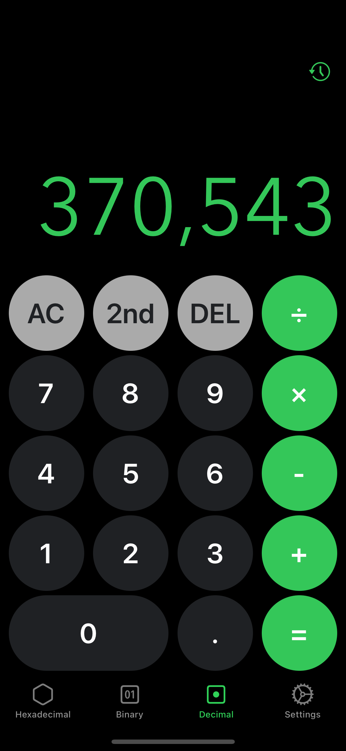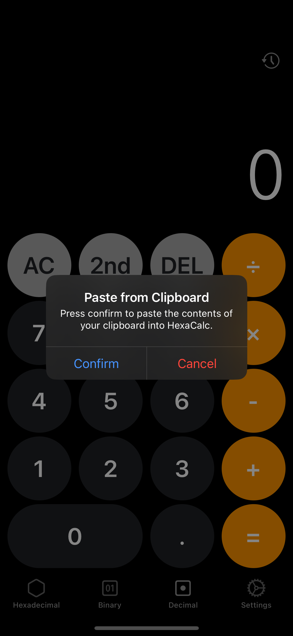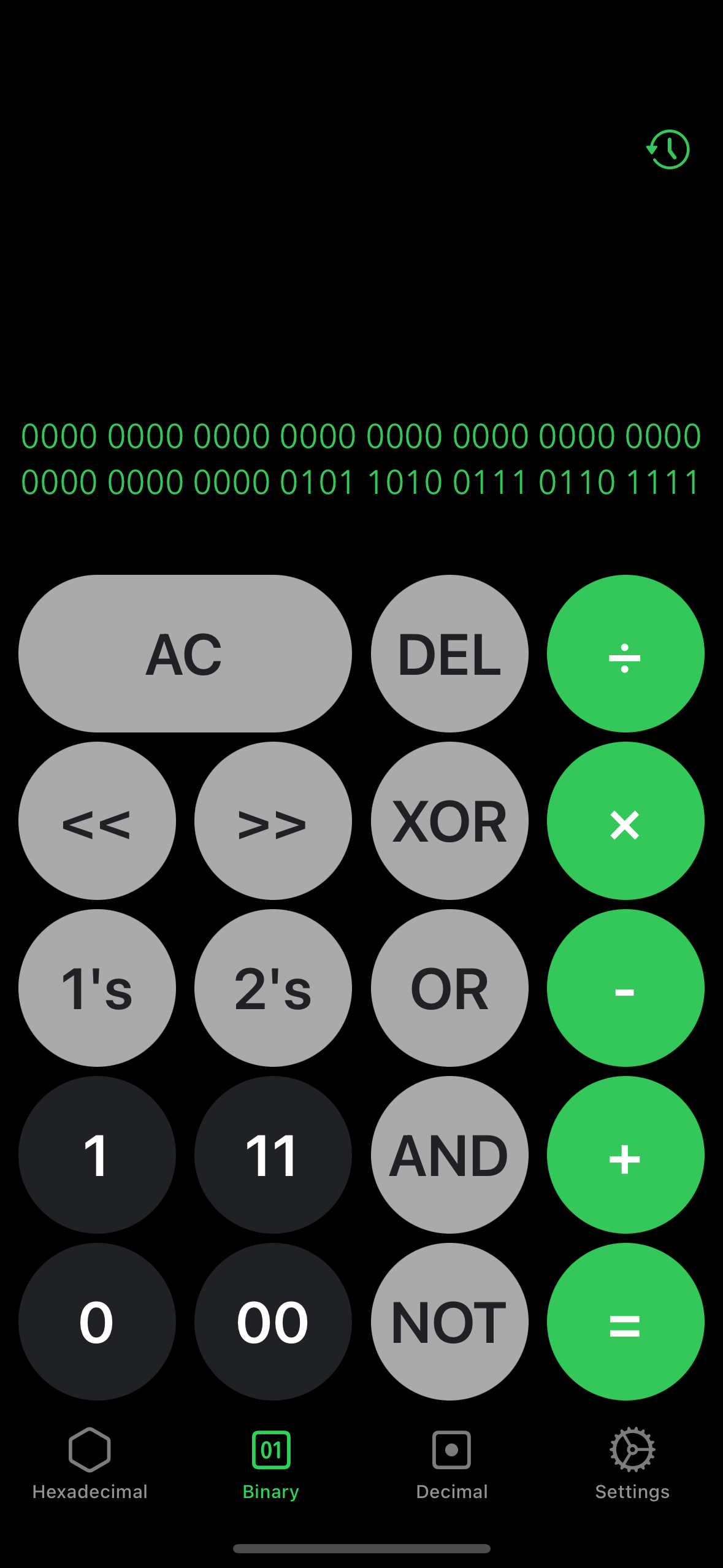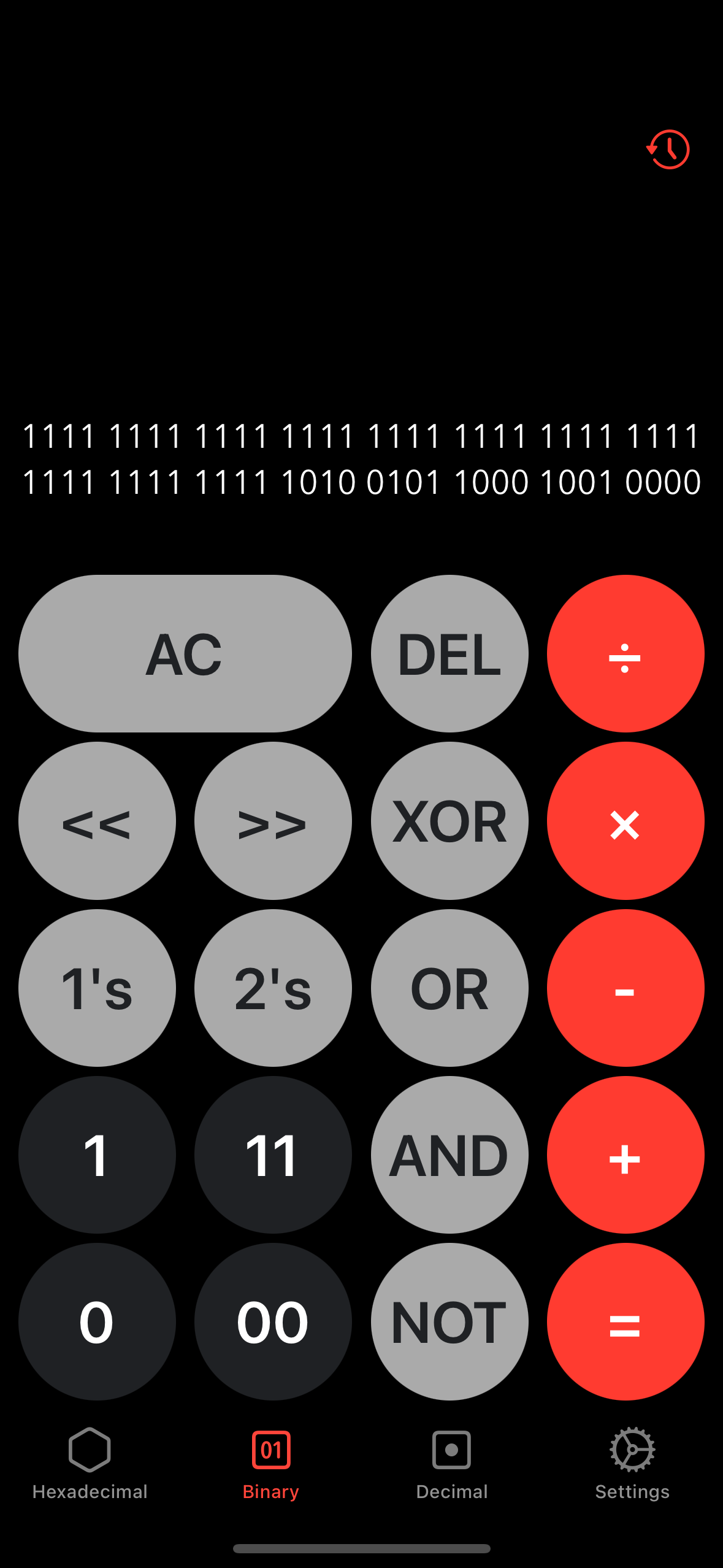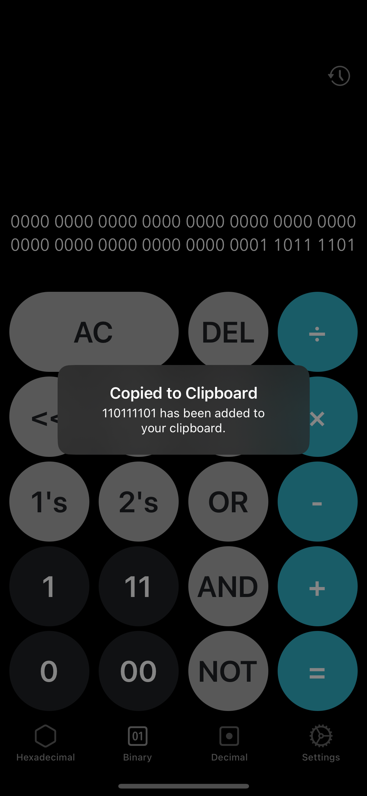 Three tabbed calculator for decimal, hexadecimal and binary for iOS built in Swift with Xcode. Provides numerous operations and seamless conversion between the three tabs.