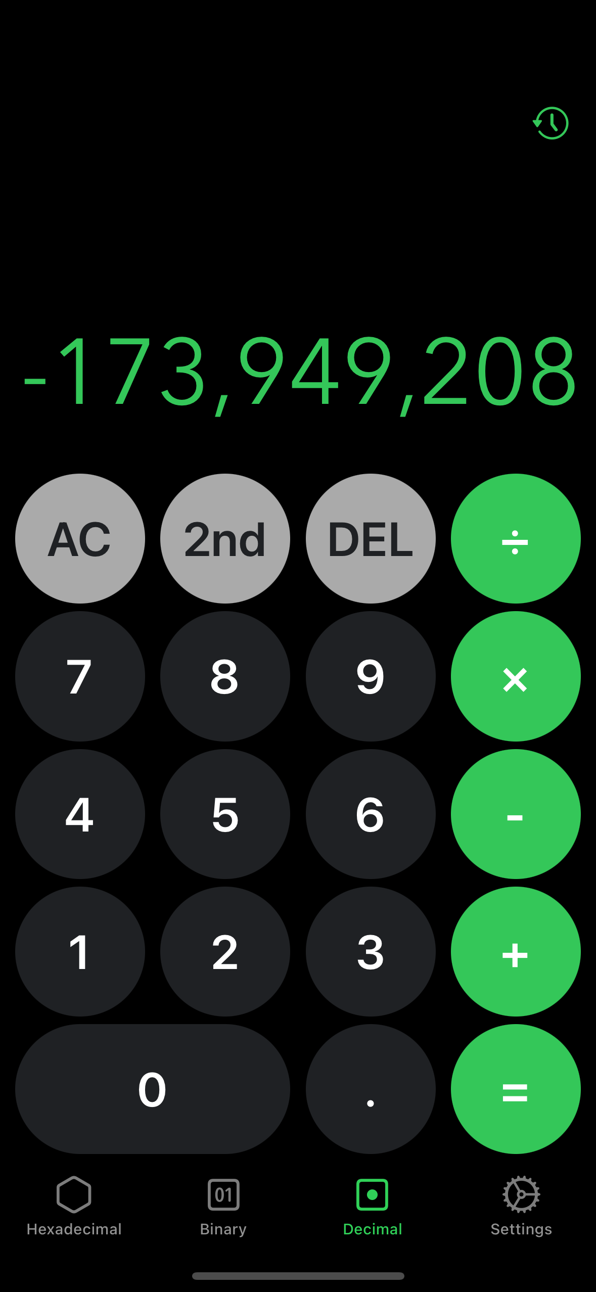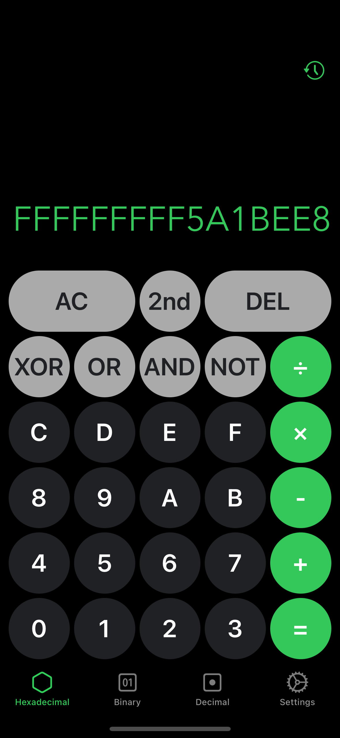 Green Positive Hexadecimal Output Green Negative Hexadecimal Output Red Negative Hexadecimal White Text Output Calculation History for Hexadecimal Calculator