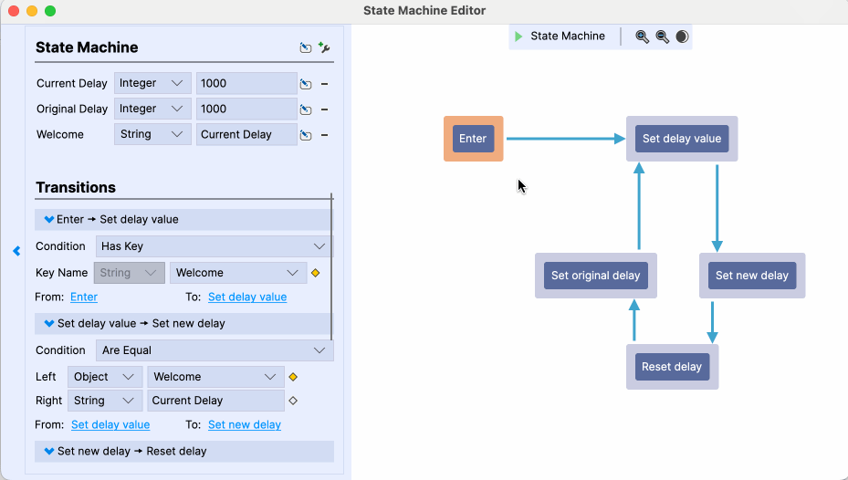 ๐ A state machine where each state represents an executable action, and each transition represents a condition for executing the next action.