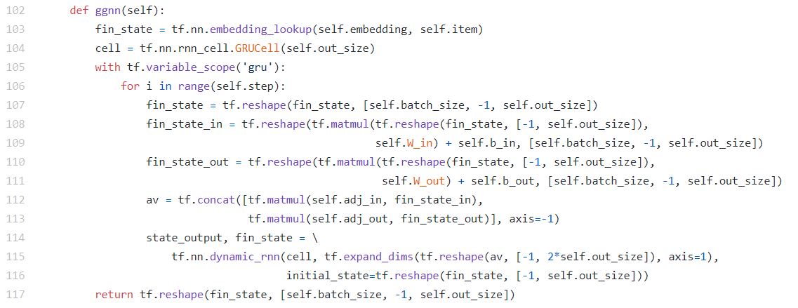 Cause in my understanding, item should be fed into RNN time step by time step for a session, which means the hidden state (embedding) will be affected by the previous click item. I wonder why the inputs shape is (# of all items in a batch, 1, 2 * hidden_size) instead of (self.batch_size, max_n_node, 2 * hidden_size). What is the meaning of this setting in dynamic_rnn function ?