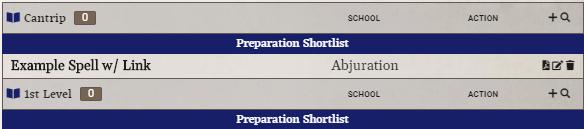 Quick links are provided on player actor sheets like the following.