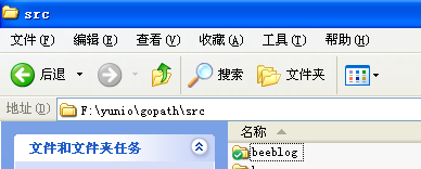 Let's proceed by assuming that our GOPATH points to a folder with an ordinary directory name (if not, we can easily set up a suitable directory and set its path as the GOPATH). As we've describe earlier, a GOPATH can contain more than one directory: in Windows, we can set this as an environment variable; in linux/OSX systems, GOPATH can be set using export, i.e: export gopath=/path/to/your/directory, as long as the directory which GOPATH points to contains the three sub-directories: pkg, bin and src. Below, we've placed the source code of our new project in the src directory with the tentative name beelog. Here are some screenshots of the Windows environment variables as well as of the directory structure.