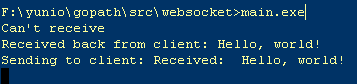 go get golang.org/x/net/websocketWebSocket分为客户端和服务端,接下来我们将实现一个简单的例子:用户输入信息,客户端通过WebSocket将信息发送给服务器端,服务器端收到信息之后主动Push信息到客户端,然后客户端将输出其收到的信息,客户端的代码如下: