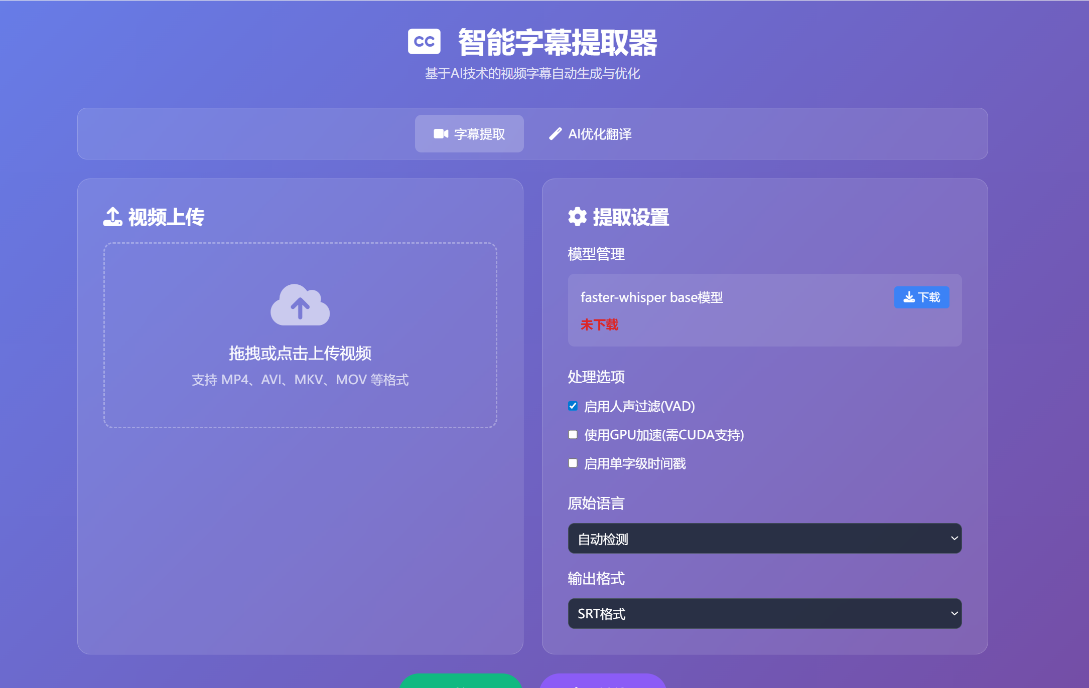 - 🎬 智能字幕提取: 基于faster-whisper的精准语音识别
