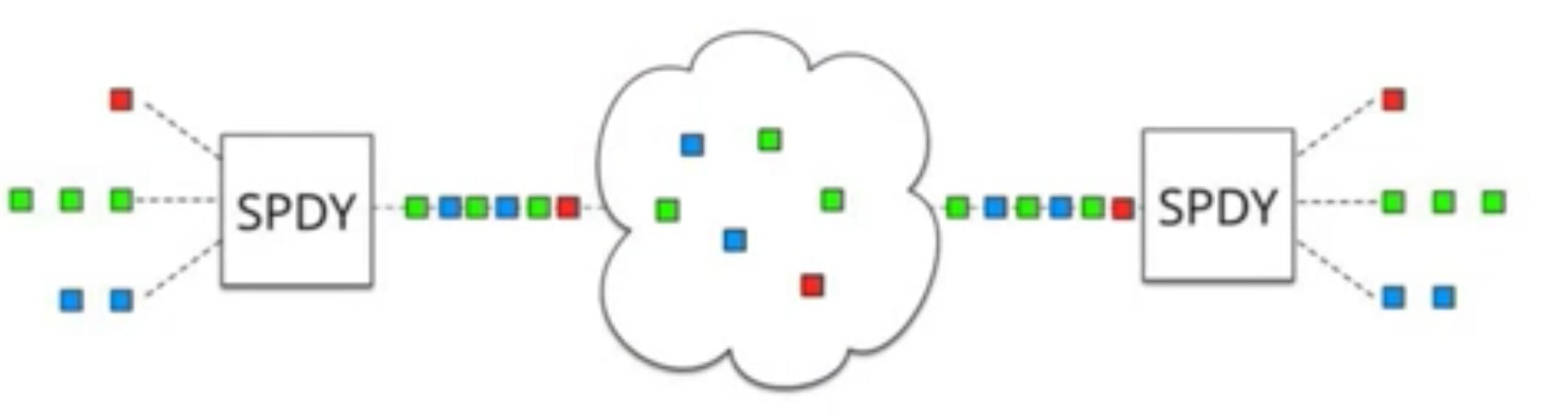 有没有办法解决队头阻塞呢,答案是肯定的。SPDY 协议的做法很值得借鉴,它采用了多路复用(Multiplexing) 技术,允许多个 HTTP 请求共享同一个 TCP 连接。我们假设每个资源被分为多个包传递,在 HTTP 1.1 中只有前面一个资源的所有数据包传输完毕后后面资源的包才能开始传递(HOL 问题),而 SPDY 并不这么要求,大家可以一起传输。