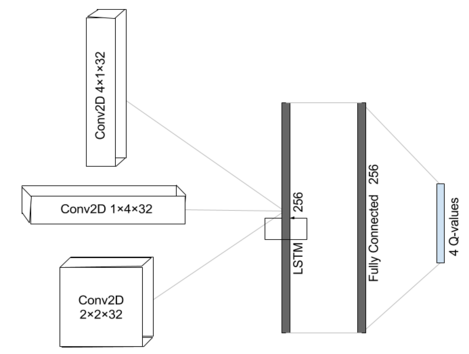 After this survey, this work was motivated by the desire to explore the idea that using DQN with a recurrent layer to account for the temporal dependencies between the states way allow for the usage of a smaller network in solving 2048. The work is based on the modification of DQN to include recurrent layers introduced in [2].