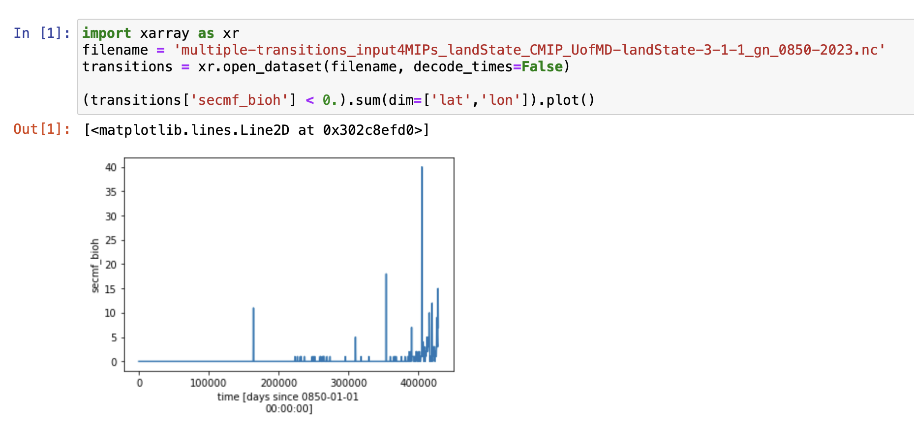 One thing that bothers me a bit is the units of the time axis: In this data set it is set to “days since 0850-01-01 00:00:00”, in NOLEAP calendar. If taken on its face value, it would mean that the models need to apply land use every 365 days. GIven that the historical and future simulations are typically done using calendars other than "NOLEAP", it would result in significant shift in application dates with respect to the year boundaries.