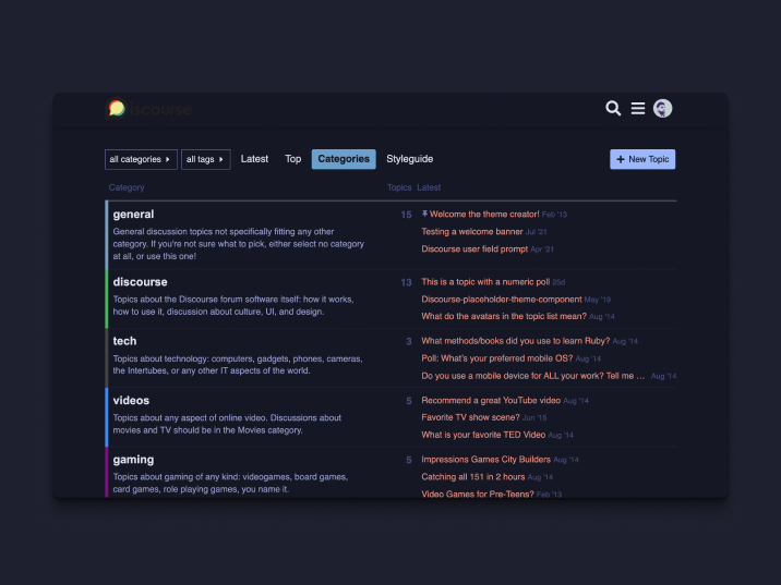 - Choose popular Discourse themes and theme components