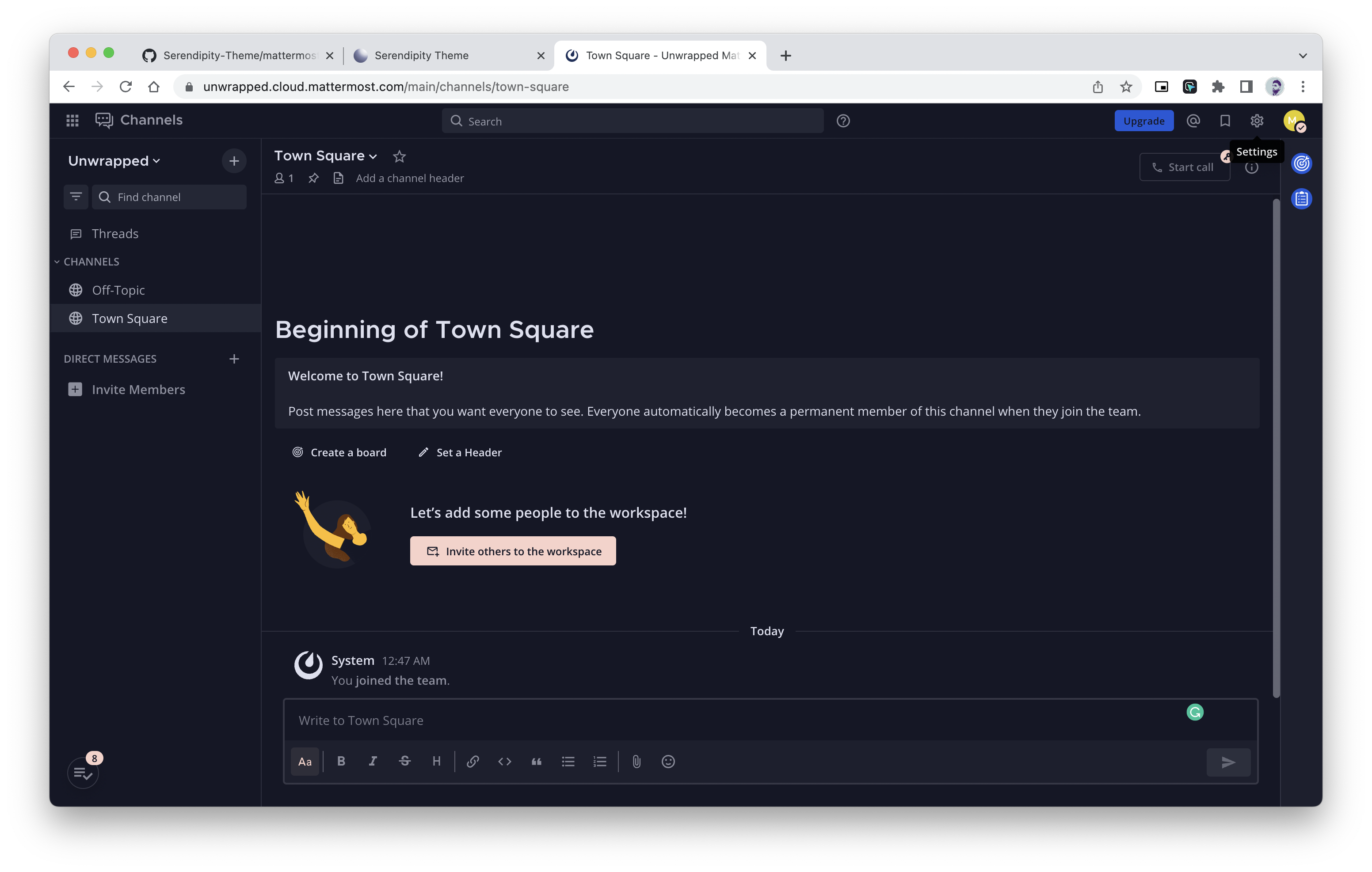 Serendipity theme adapted to Mattermost