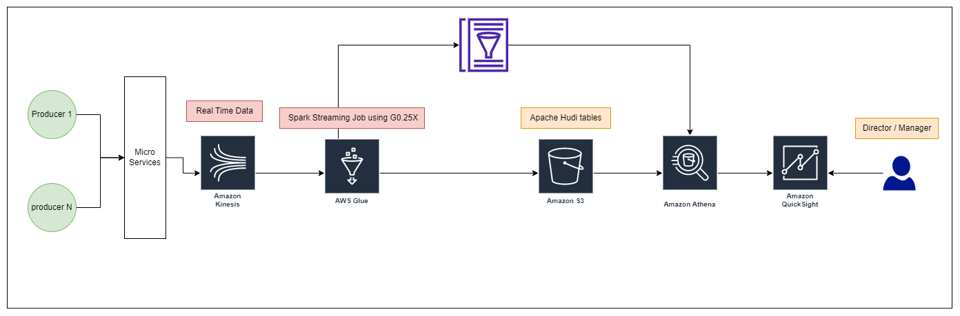 Build Glue(Spark) Streaming pipeline for clicksstreams and power data lake with Apache Hudi and Query Real time with Athena