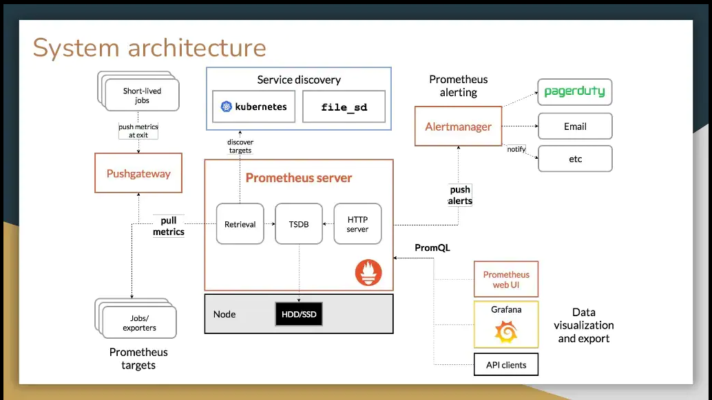 - Pulls metrics data from instrumented targets with the Prometheus server
