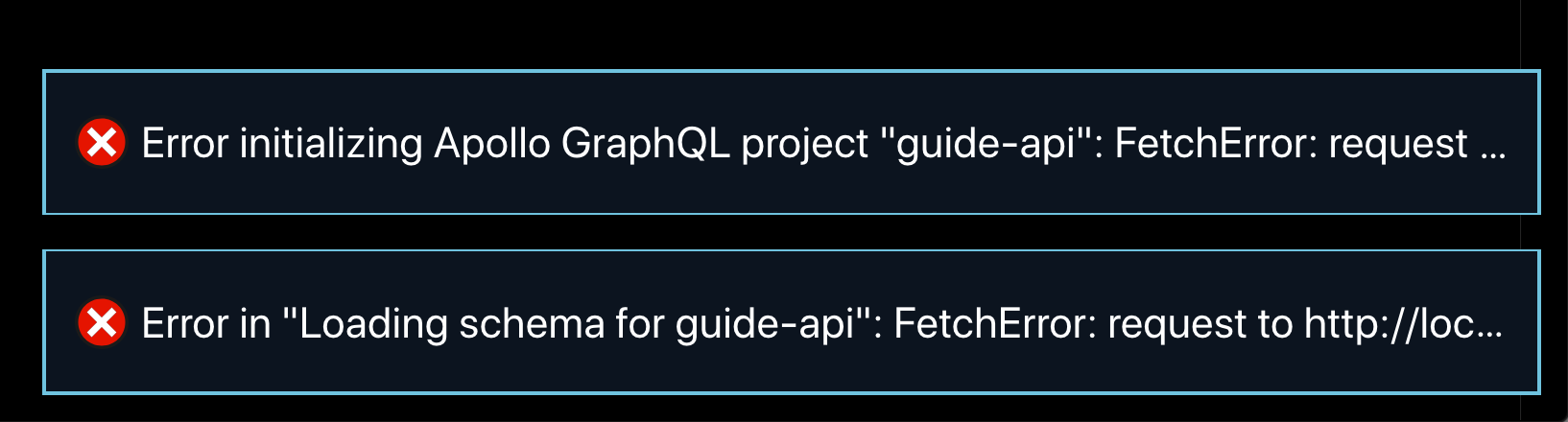When I open my project and my dev server is not running, I get two errors and autocomplete no longer works. To fix it, I have to start my dev server and reload the window. It would be nice if the extension: