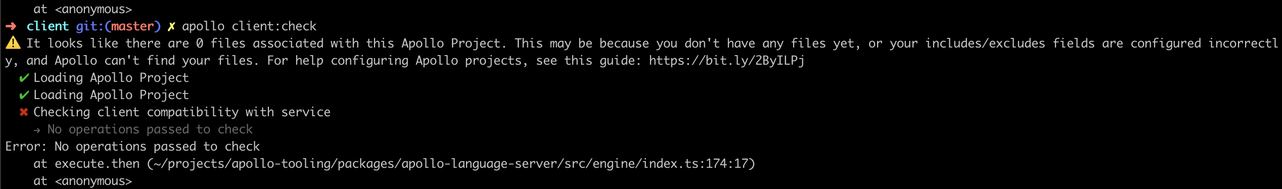 Whenever the VS Code extension opens a file, it tries to find a projectForFile. If the includes or excludes field in the Apollo Config file is misconfigured, it may never actually find the project for a given file.