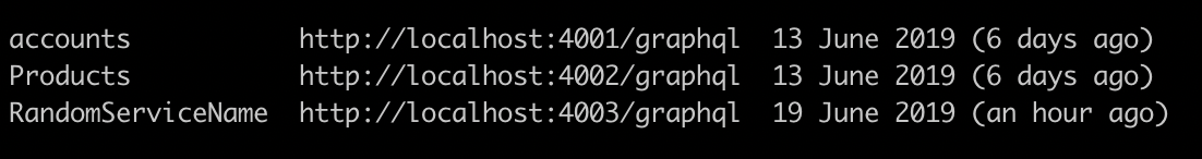 service:listto the Apollo CLI tool, printing out the lists in a federated services like so:Open questions: