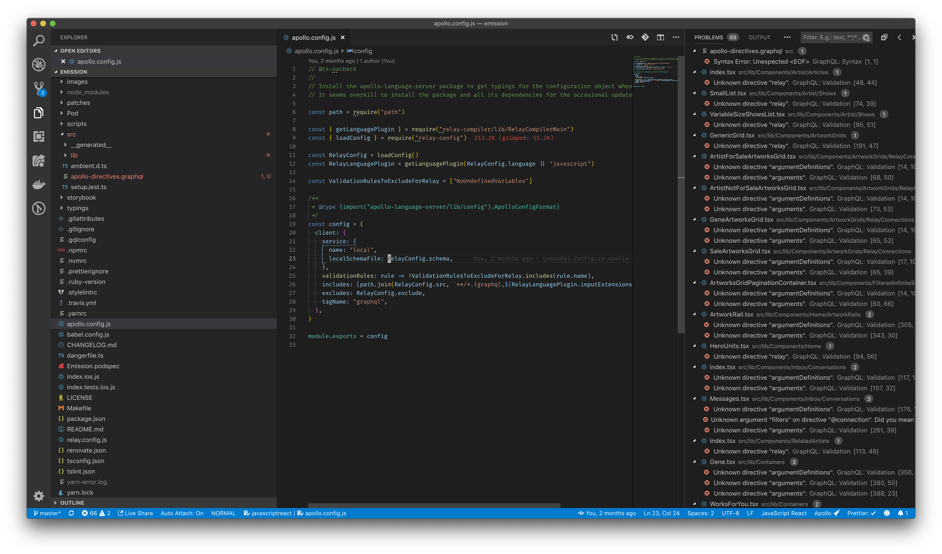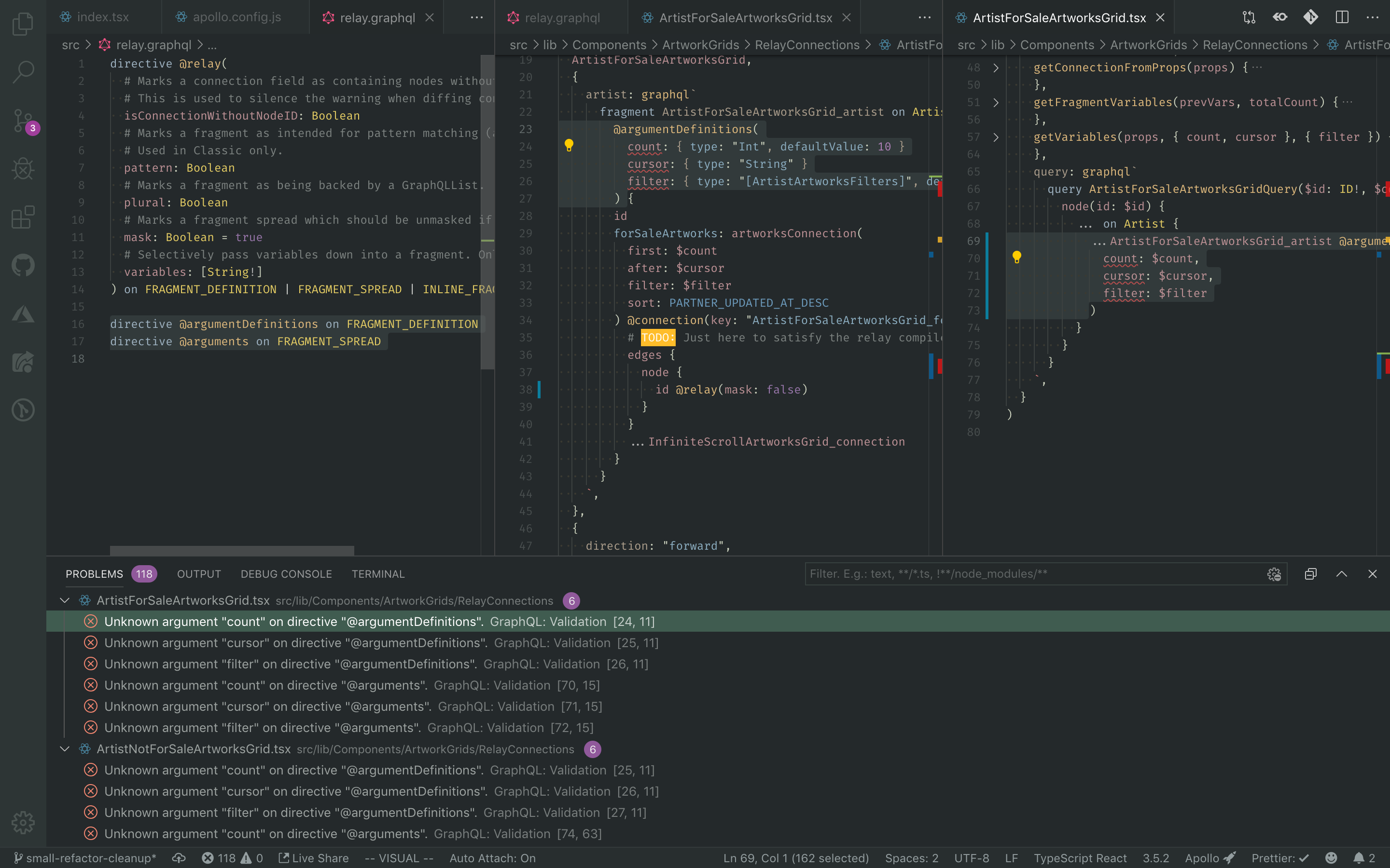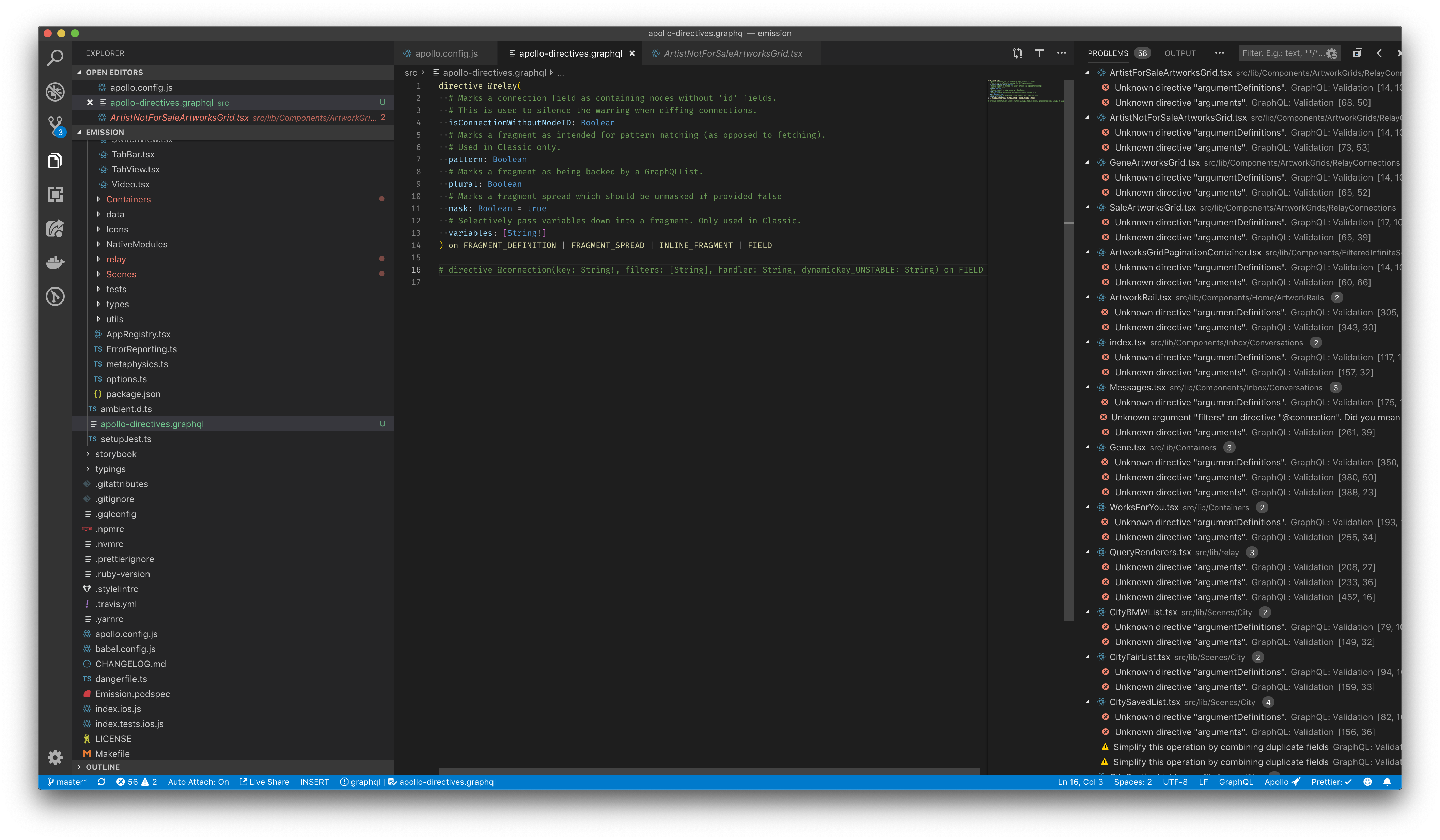 It’s definitely not unreasonable 😄 I’m unsure what other frameworks might do, but Relay doesn’t define all of its directives in graphql files, but rather as strings inside JS modules. For example, here’s the I’m fine going with that as a first version and see how it pans out, though, if you think having a way of specifying such schema extensions as a string would be tough 👍 I just now realised another tougher issue in combination with Relay, which is its The problem with these directives is that their parameters are by definition unknown upfront, which is probably also why I don’t see a solution other than disabling the Having said all that, this all is in no way a blocker for this PR imo, which is looking like a great next step forward for this vscode extension 👏 |