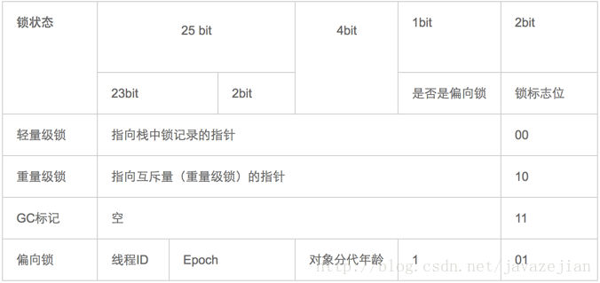 Mark Word 的存储状态