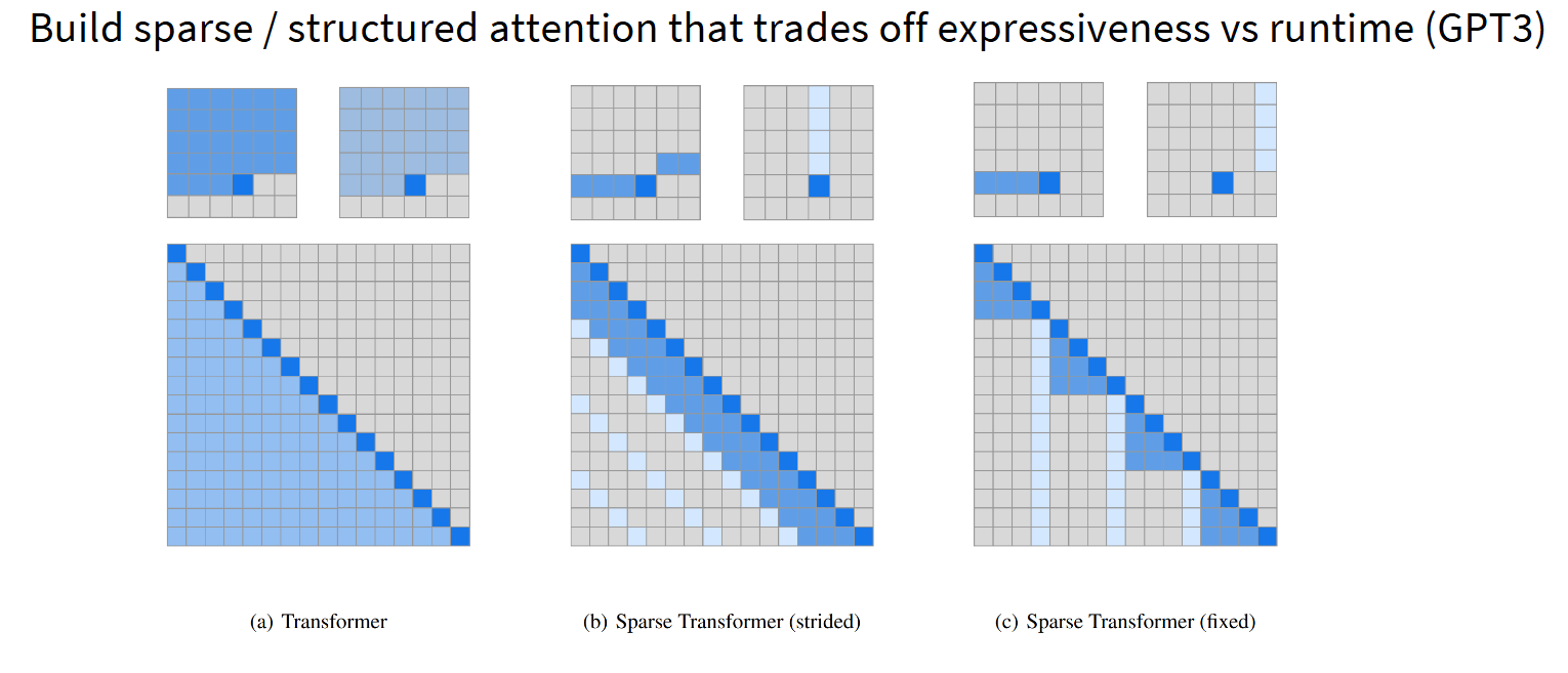 回顾2019年,OpenAI发表了一篇精彩论文,探讨如何构建更长注意力的模型。他们提出的解决方案是设计稀疏注意力模式,不是关注整个序列,而是聚焦于每个分块的局部窗口,再辅以对角线等注意力模式来跨区块传递信息。通过这种稀疏或结构化注意力,可以在表达能力和运行效率之间取得平衡。