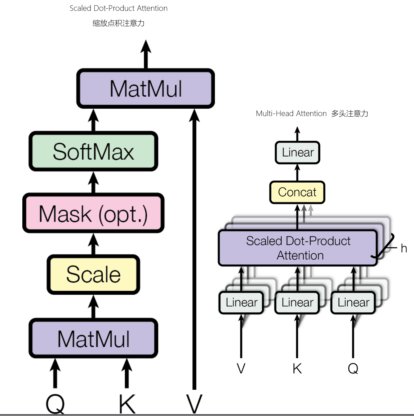 答:并行关注不同模式,每个头可学习不同注意力模式: