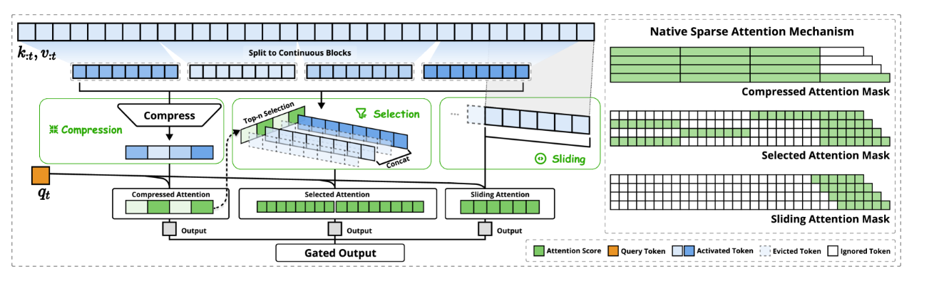 以往的的注意力都遵循着全连接的范式,每个Query token都要和所有的历史token计算注意力,问题在于对模型推理的关键token其实很少,大部分token都是无关紧要的。就像一句话中并不是所有字都是关键的,还存在大量语气词和助词。