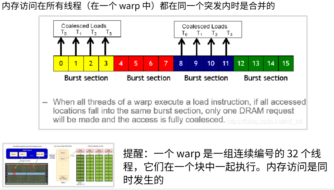 SM同时驻留64个Warp,4个Warp调度器每个管理16个Warp;Warp内32线程在SIMD单元上同步执行