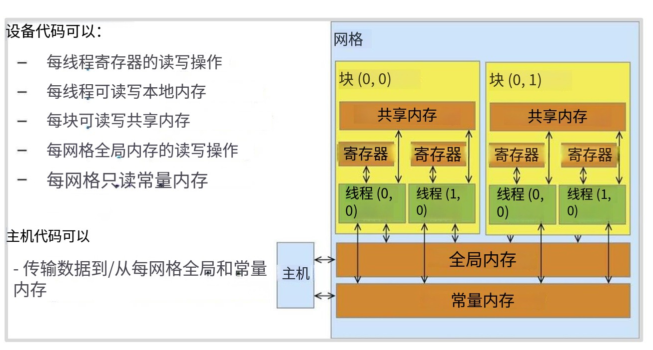 每个线程有私有寄存器(通常256个);线程ID:threadIdx.x 决定它处理哪个数据