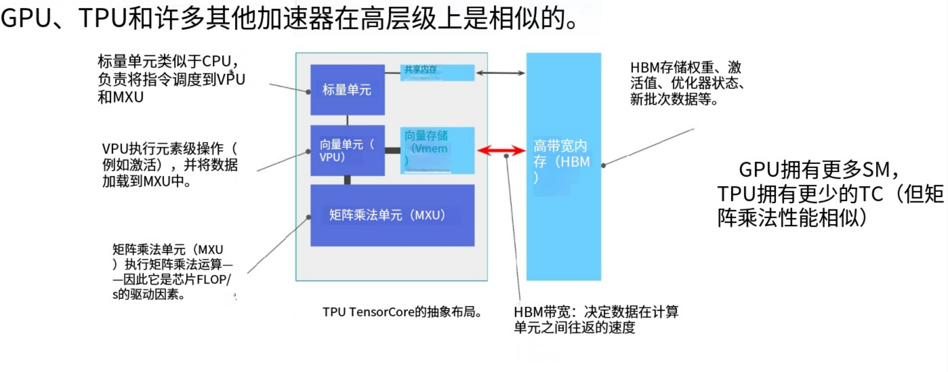 二者的设计目标截然不同,CPU优化延迟,追求单个任务最快完成。而GPU优化吞吐量,GPU不关心单个任务延迟,只追求所有任务整体最快完成。为此GPU配备大量可快速休眠唤醒的线程,虽然GPU每个任务的延迟较高,但整体完成时间反而领先CPU。这就是它们不同的设计理念和目标。因此,GPU的架构结构不同在于在于GPU会运行大量流式多处理器(SM)。