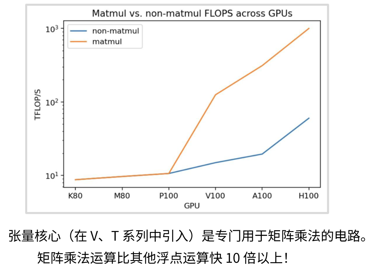 到了AI时代,深度学习中的矩阵将GPU推上神坛。因为AI时代的核心是神经网络的计算,其中涉及到大量的矩阵运算,矩阵运算的本质是大量的乘法和加法,特别适合GPU来做这种简单又重复的运算,在2010年左右人们就开始利用GPU来进行AI相关的计算。