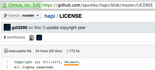 Hapi was (originally) built by (the fantastic team of people assembled by @hueniverse) @WalmartLabs for Walmart.