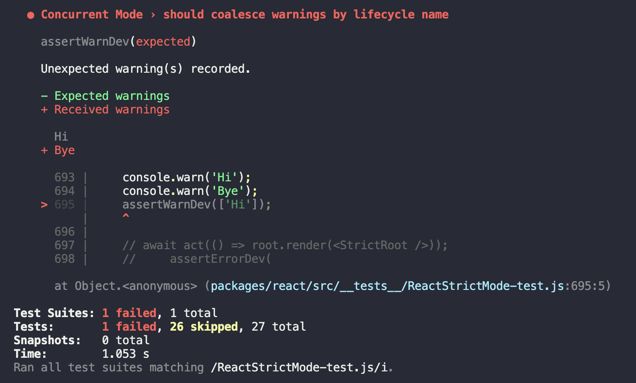 Check out the test suite for snapshots of all the failures we may log.assertConsole<method>Dev helpers (#28732)1 parent da69b6a commit 608edcc