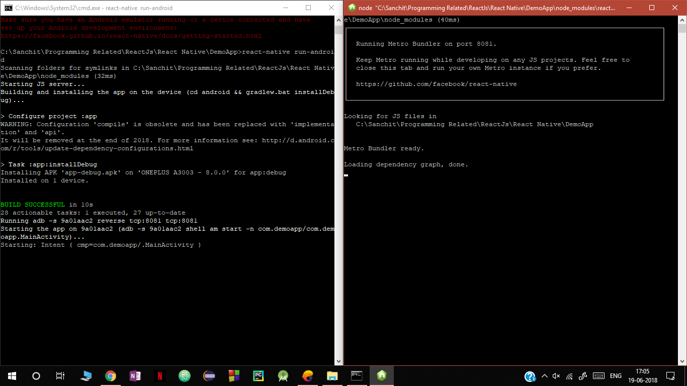When using `react-native run-android` It builds the app to phone but It is taking forever to run the package server. The errors and codes are attached   > Any Solution to fasten the process? It takes more than 30min to build **whenever it build**s..