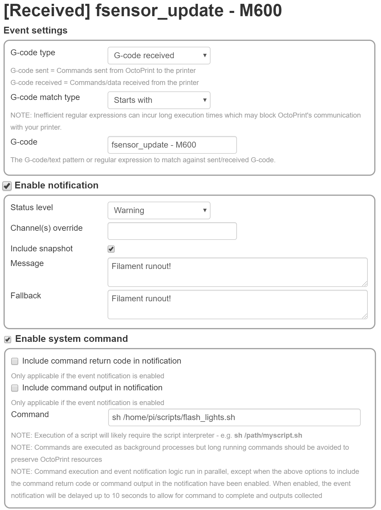 G-code event & System command Example
