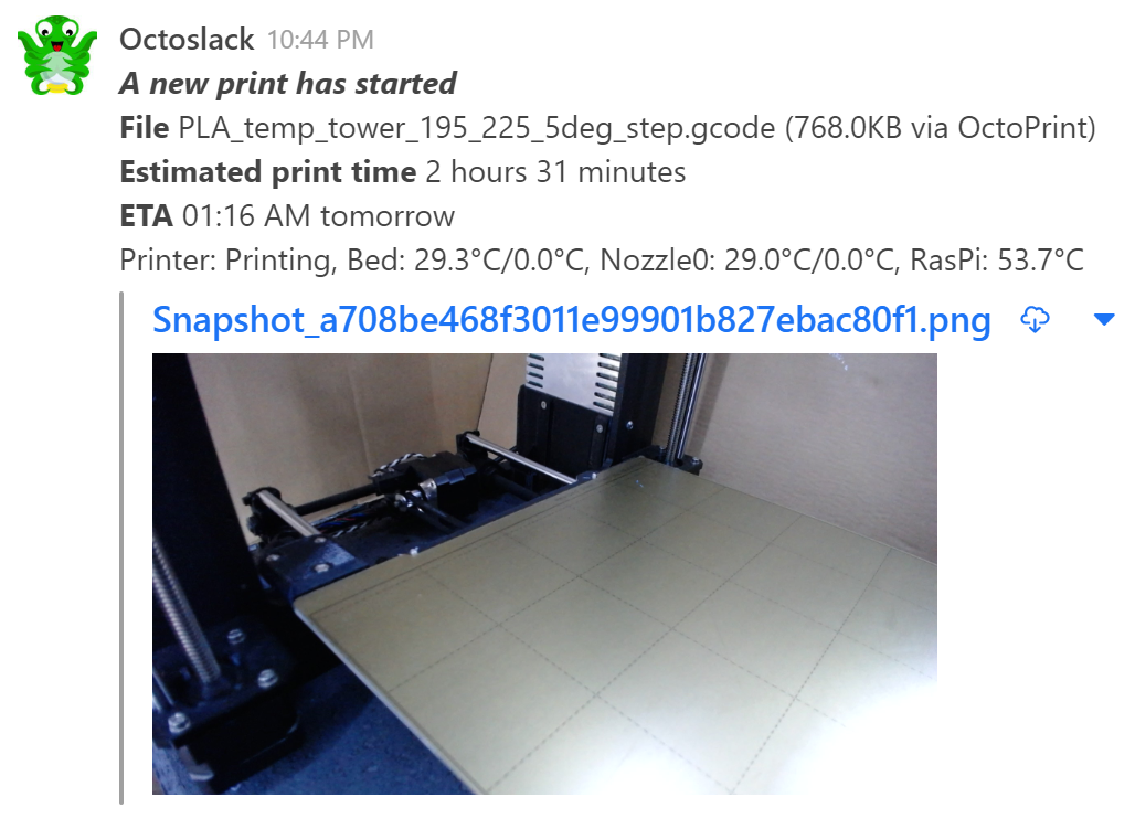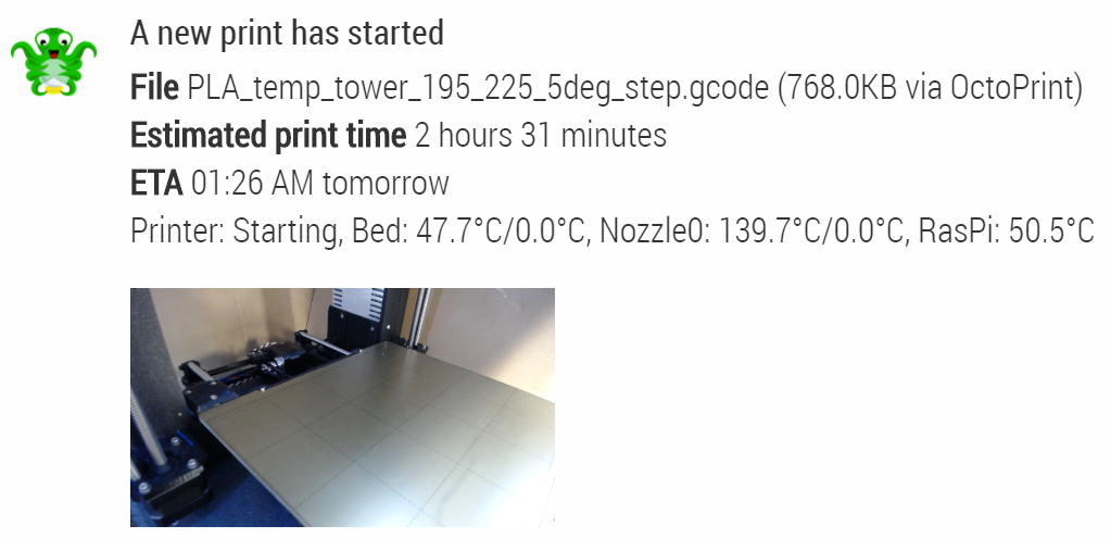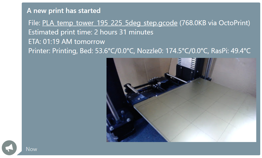 OctoPrint plugin for Slack, Mattermost, Pushbullet, Pushover, Rocket.Chat, Discord, Riot/Matrix, & Microsoft Teams
