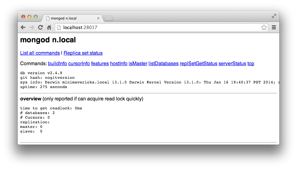 Confirm its working by visiting: http://localhost:28017/ (in your browser)