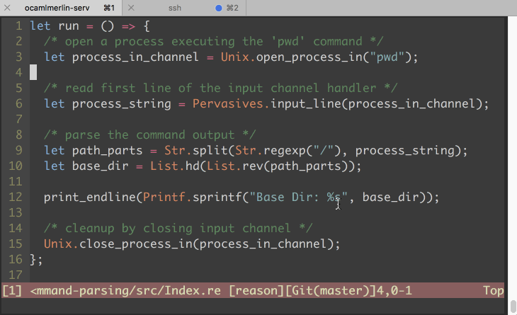file below the status bar.