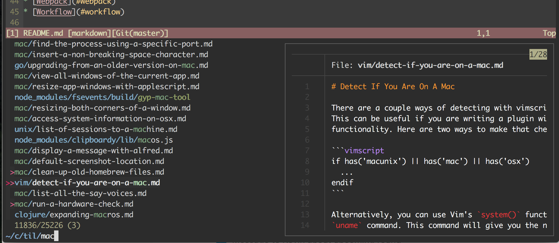When performing a fuzzy search in Vim with FZF, you likely get a mix of results you care about and results that are just noise. FZF allows you to narrow down to just the results you care about. Move the cursor over each result of interest and hit tab. Little red arrows will show next to each item you have selected.