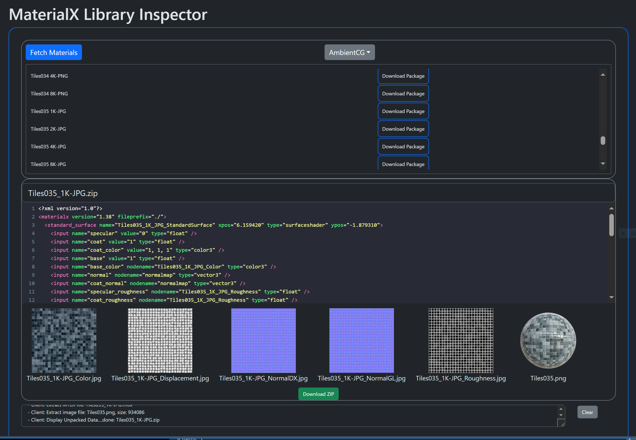 AMD GPUOpen database MaterialX packages can be downloaded (as zip files). Images and MaterialX documents can be extracted for any of the posted materials in the database.
