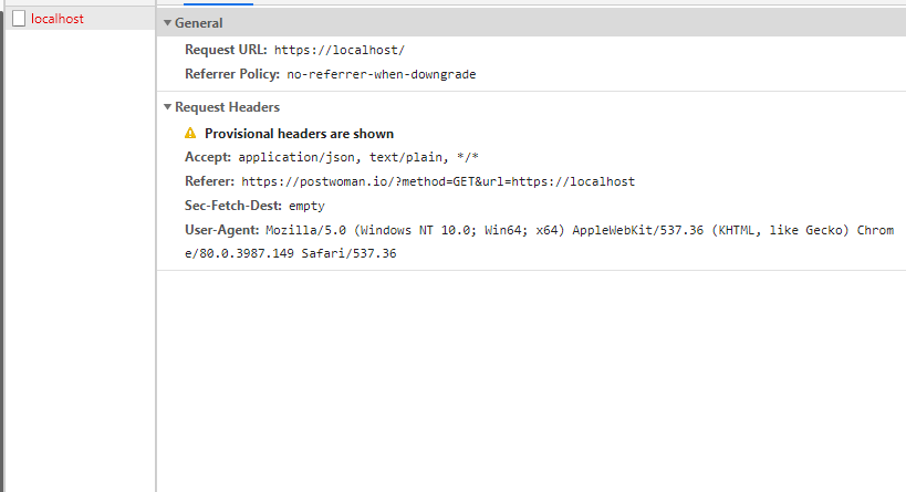 Console print an "net::ERR_CONNECTION_REFUSED" when I try to access my nginx welcome page on my localhost. But the interface work nomarly request by chrome or postman.