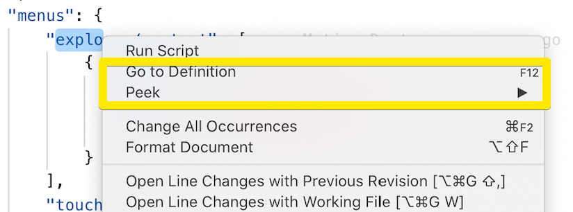 The built-in npm extension provides a Go to Definition command. Open a package.json:  I couldn't find a location where this command is successful?