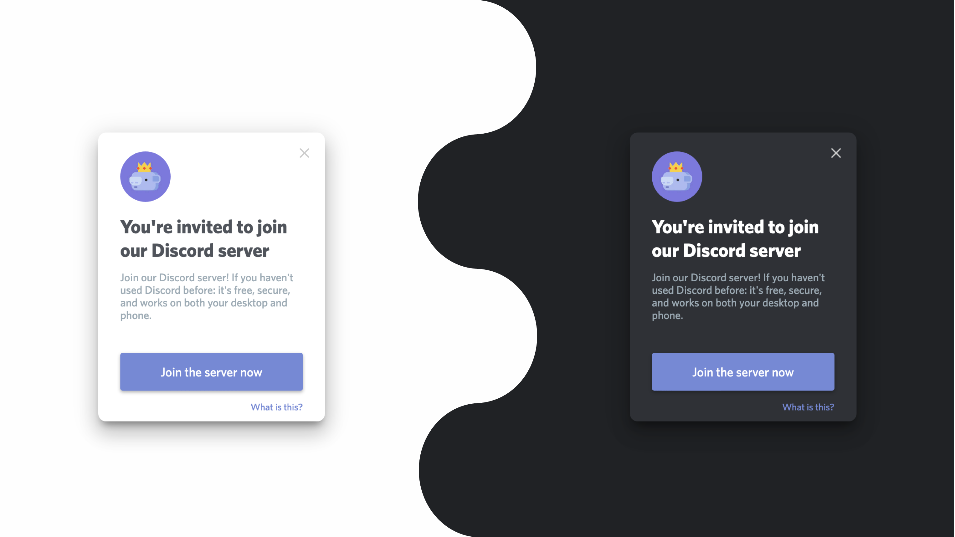 This snippet adds a floating action button that links to your Discord server! The look of it is quite similiar to the Intercom live chat button, which means many users are familiar with the concept of a chat button. The snippet is styled to imitate the Discord UI and works everywhere.