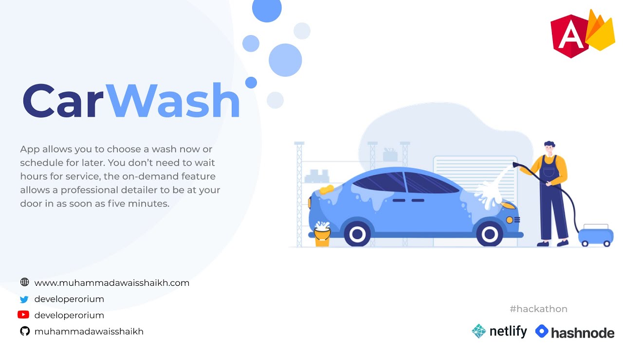 Opensource Car Wash PWA App built with ❤️ using Angular, Firebase for Netlify and Hashnode hackathon. Watch Full Demo here: https://youtu.be/egrLziXPRSU