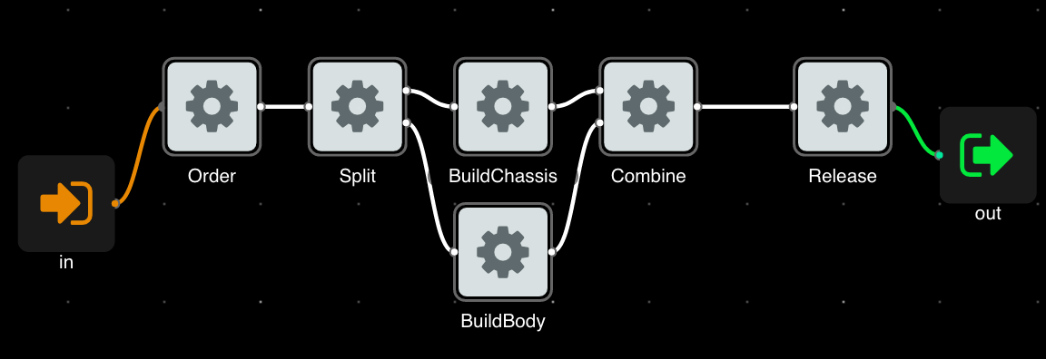 The BuildBody and BuildChassis are actually subgraphs consisting of other components. You can copy and paste .fbp code into NoFlo Visualize to get the picture of those subgraphs.