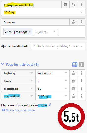 The documentation for the attribute says that it is in [tonne] but the field has for title "Maximum Weight [kg].