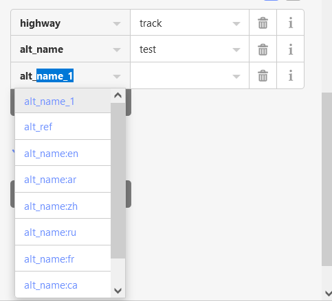 - observe that a list of possible values appears, among them 'alt_name' and 'alt_name_1'.