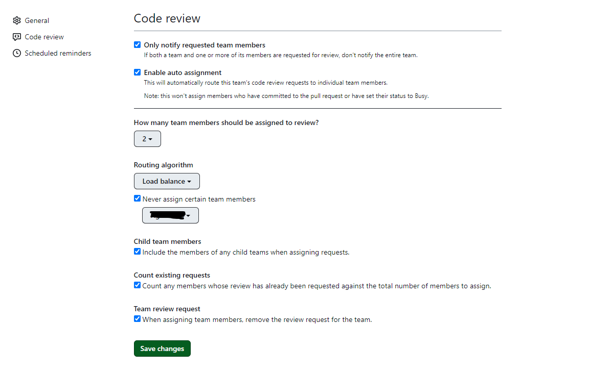 However, whenever I assign a PR review to the team it always picks the same 2 (out of 3 possible) people. This seemed a coincidence at first but it is still assigning it to the same 2 people without fail, even though they have multiple PRs to review and the third person has none.