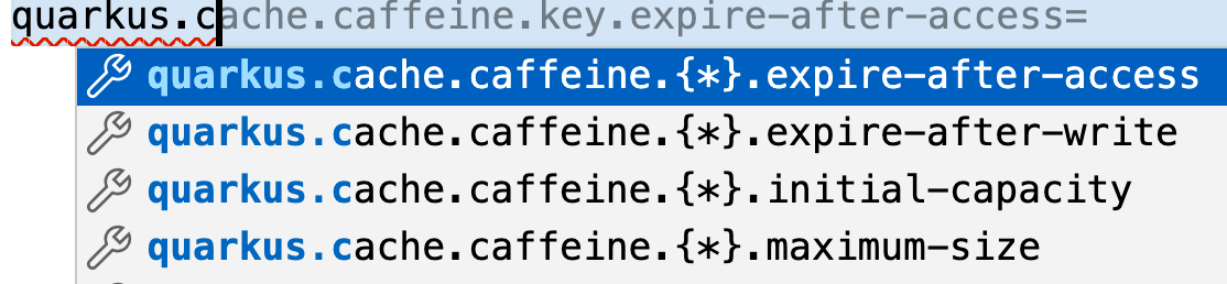 Then completion for cache configuration should be able to automatically propose the proper names in application.properties: