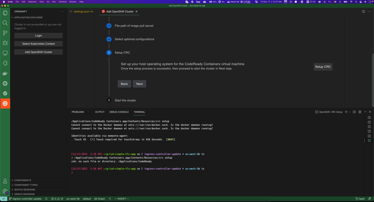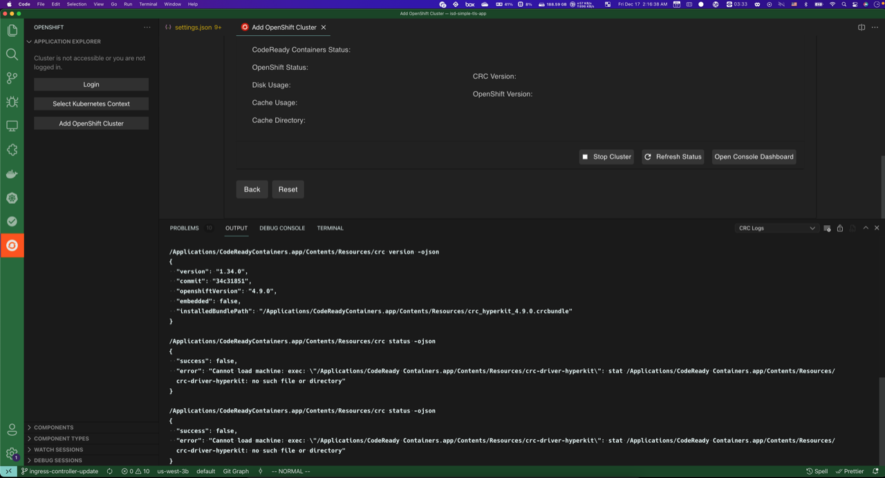 - I’m running CodeReady Container in MacOS