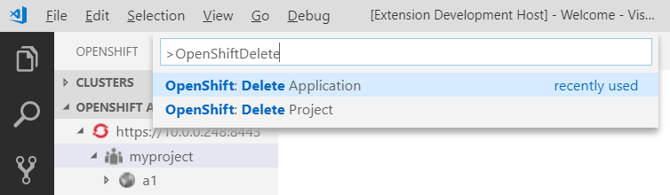 The idea is to provide 'OpenShift: Delete Application' command to command palette the same way it is described in #232.
