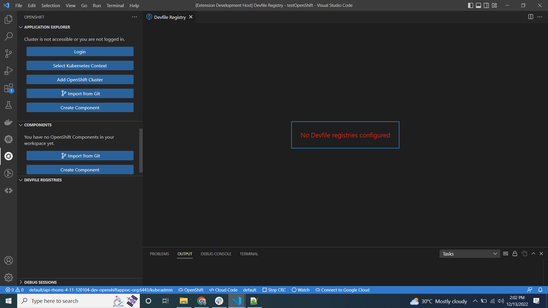| errorMessage: 'No Devfile registries configured' |